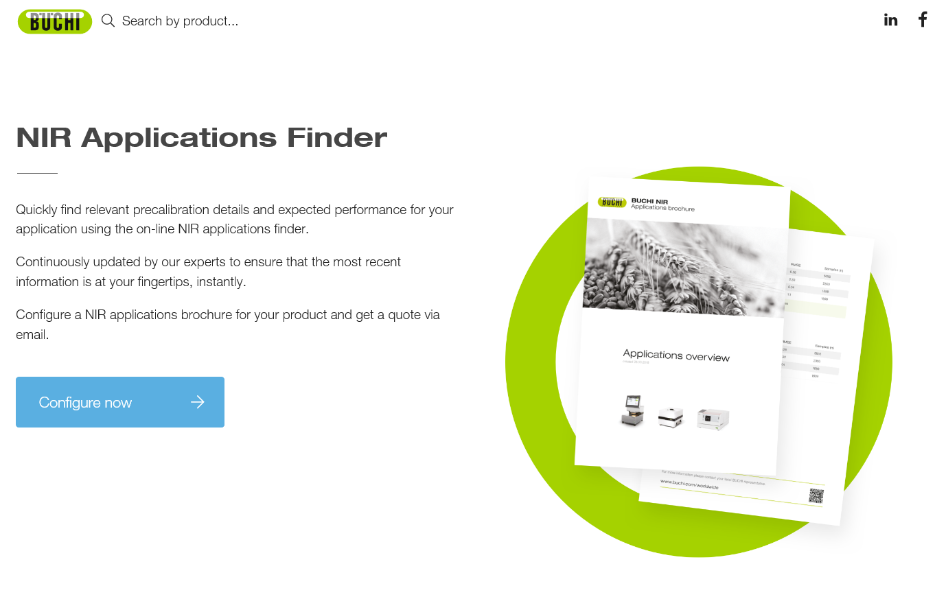 If cheese quality is on your mind, but an on-line solution isn’t a good fit, BUCHI also has milk & dairy solutions for our off-line and at-line NIR. You can use our NIR Applications Finder on-line tool to configure the perfect NIR solution for you. Choose your industry and products, then get a full listing of available pre-calibrated applications, plus a quote.