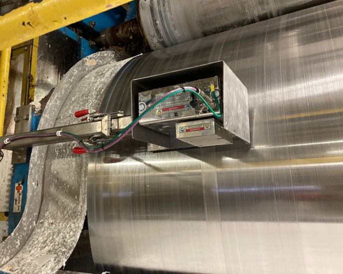 In addition to monitoring finished products, BUCHI NIR-OnlineTM NIR sensors can be used for real-time monitoring of soap formulations on chill-rolls during the production process (Figure 4). Process monitoring enables operators to adjust ingredient proportions and processing variables as soon as deviations are observed. For a high-throughput, full-time soap plant, the benefits of in-process monitoring with NIR cannot be overstated.