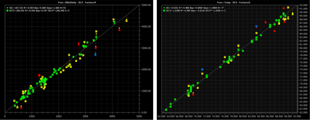 Examples of calibrations used to predict two properties in an incoming material mix for anaerobic digestion